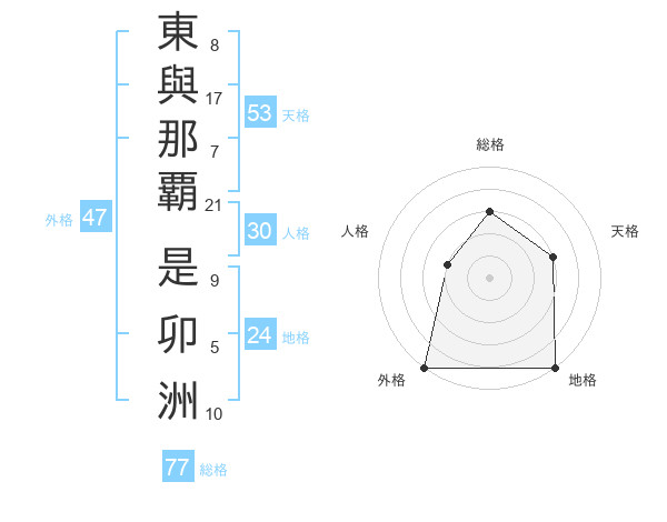 東與那覇 是卯洲さんを姓名の画数から五運を鑑定