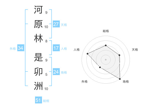 河原林 是卯洲さんを姓名の画数から五運を鑑定