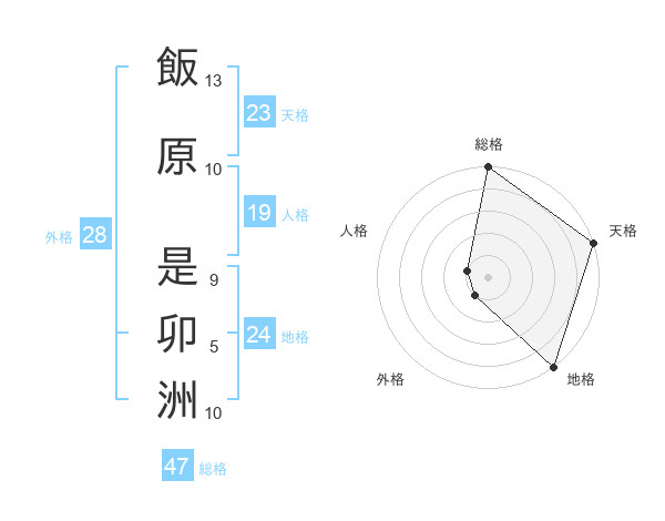 飯原 是卯洲さんの総格は47画の5点!