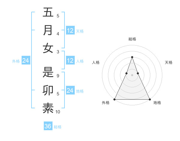 五月女 是卯素さんを姓名の画数から五運を鑑定