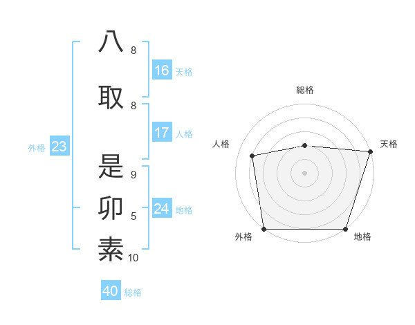 八取 是卯素さんの外格は23画の5点!