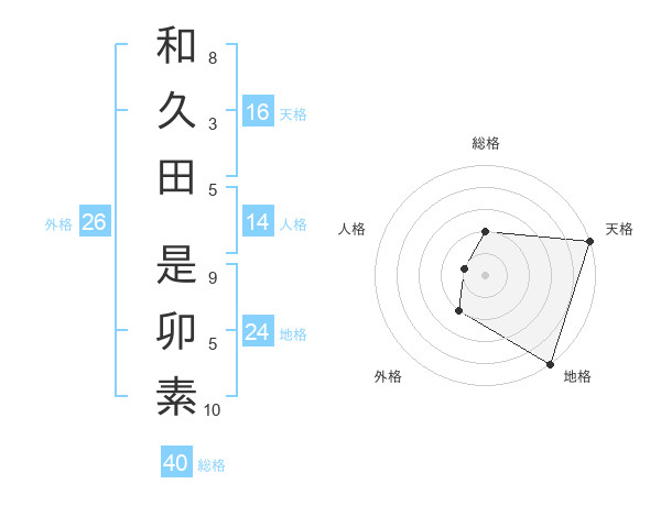 和久田 是卯素さんを姓名の画数から五運を鑑定