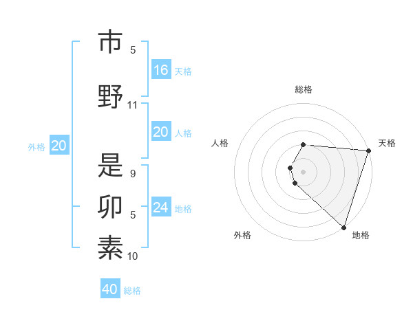 市野 是卯素さんを姓名の画数から五運を鑑定