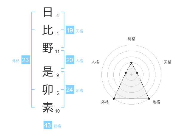 日比野 是卯素さんを姓名の画数から五運を鑑定