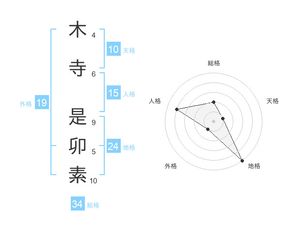 木寺 是卯素さんの地格は24画の5点!