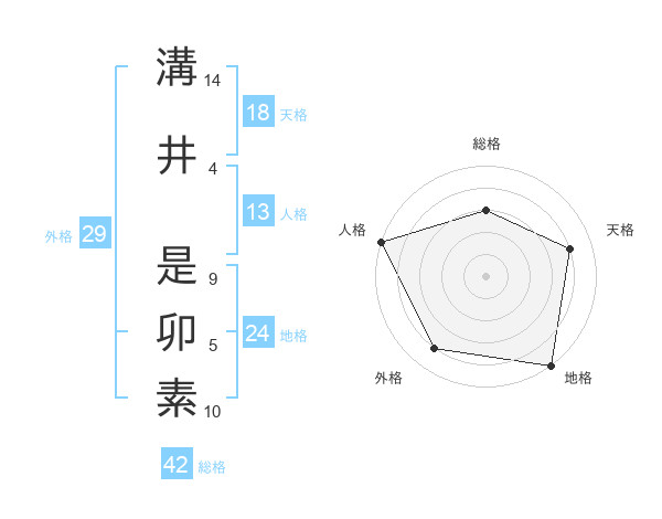 溝井 是卯素さんの総格は42画の3点!