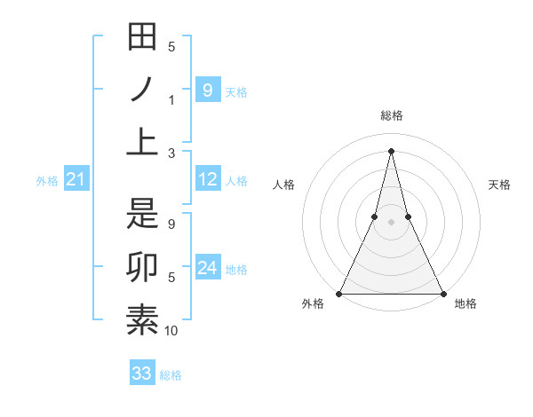 田ノ上 是卯素さんを姓名の画数から五運を鑑定