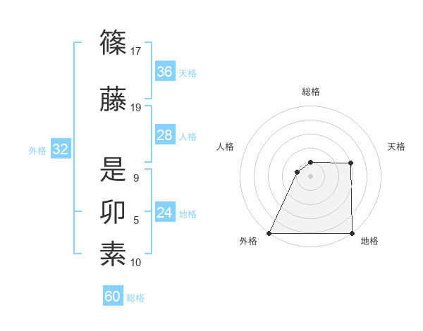 篠藤 是卯素さんを姓名の画数から五運を鑑定