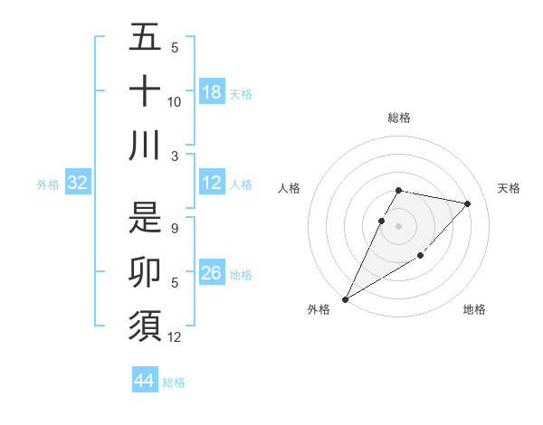 五十川 是卯須さんを姓名の画数から五運を鑑定