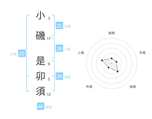 小磯 是卯須さんの総格は46画の1点!