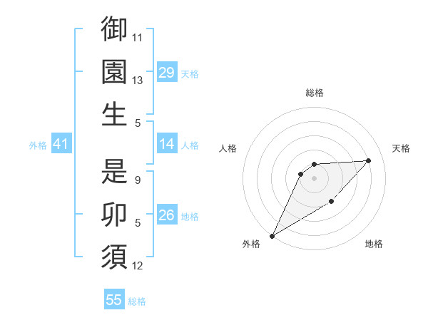 御園生 是卯須さんの外格は41画の5点