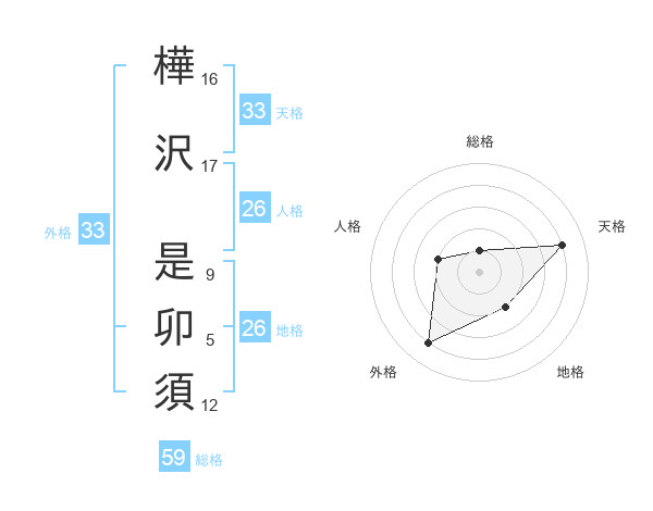 樺沢 是卯須さんの総格は59画の1点!
