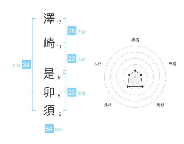 澤崎 是卯須さんを姓名の画数から五運を鑑定