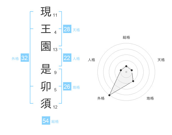 現王園 是卯須さんの外格は32画の5点!