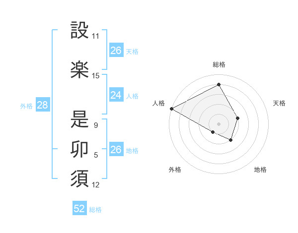 設楽 是卯須さんを姓名の画数から五運を鑑定