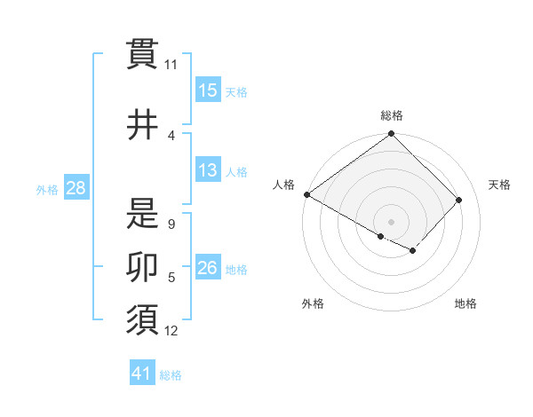貫井 是卯須さんの総格は41画の5点!