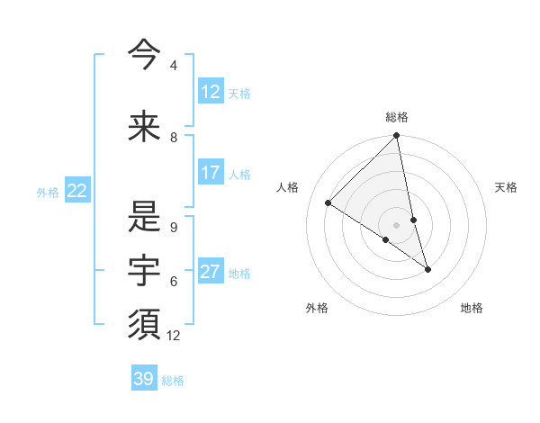 今来 是宇須さんを姓名の画数から五運を鑑定