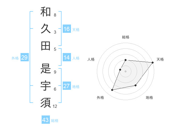 和久田 是宇須さんを姓名の画数から五運を鑑定