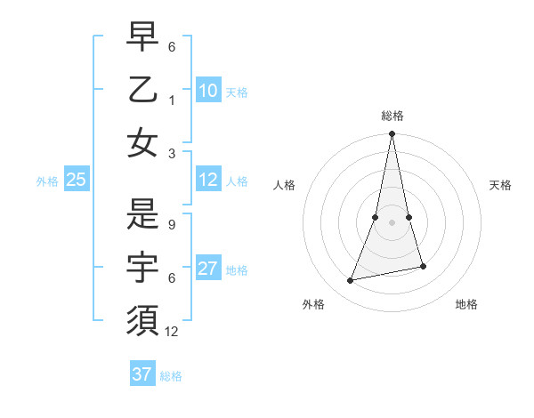 早乙女 是宇須さんを姓名の画数から五運を鑑定