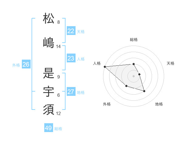 松嶋 是宇須さんを姓名の画数から五運を鑑定