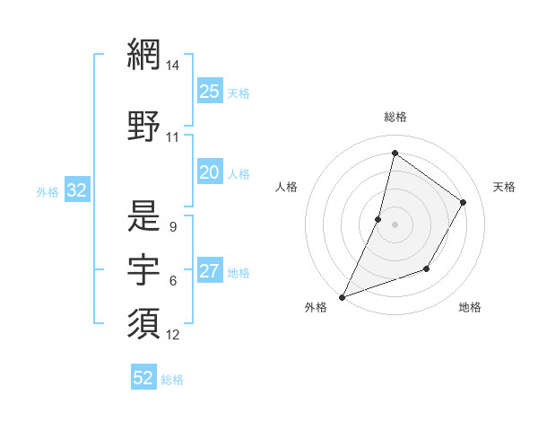 網野 是宇須さんを姓名の画数から五運を鑑定
