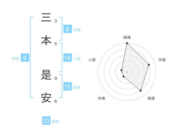 三本 是安さんの総格は23画の5点!