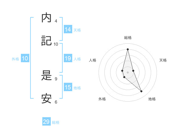 内記 是安さんの総格は29画の4点!