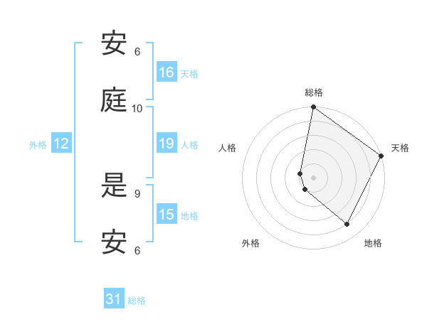 安庭 是安さんの総格は31画の5点!