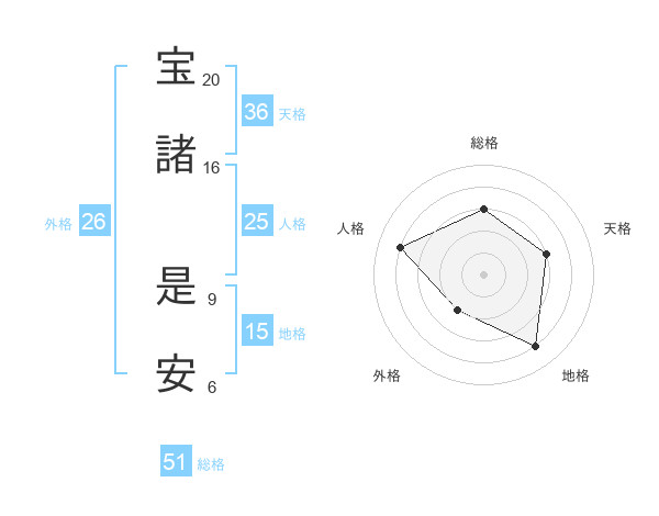 宝諸 是安さんの総格は51画の3点!