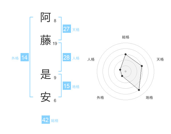 阿藤 是安さんを姓名の画数から五運を鑑定