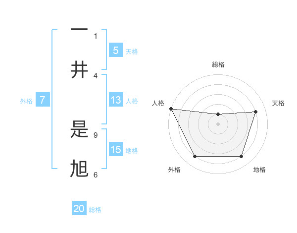 一井 是旭さんの総格は20画の1点!