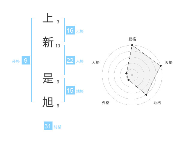 上新 是旭さんの総格は31画の5点!