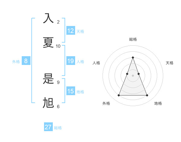 入夏 是旭さんの総格は27画の3点!