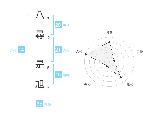八尋 是旭さんを姓名の画数から五運を鑑定