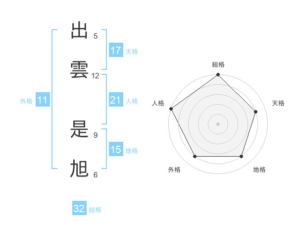 出雲 是旭さんを姓名の画数から五運を鑑定