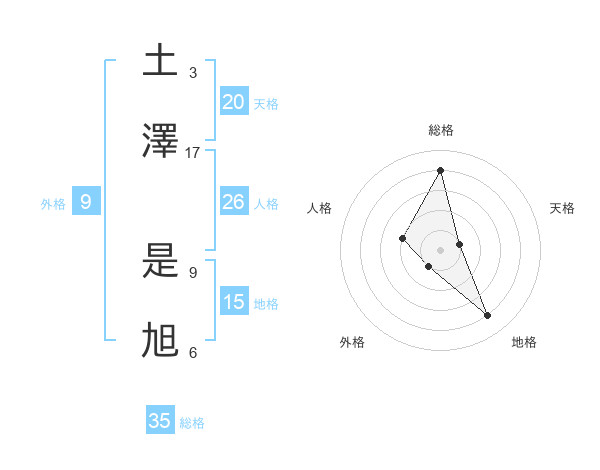 土澤 是旭さんを姓名の画数から五運を鑑定