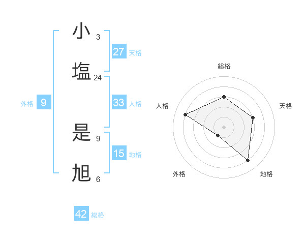 小塩 是旭さんを姓名の画数から五運を鑑定