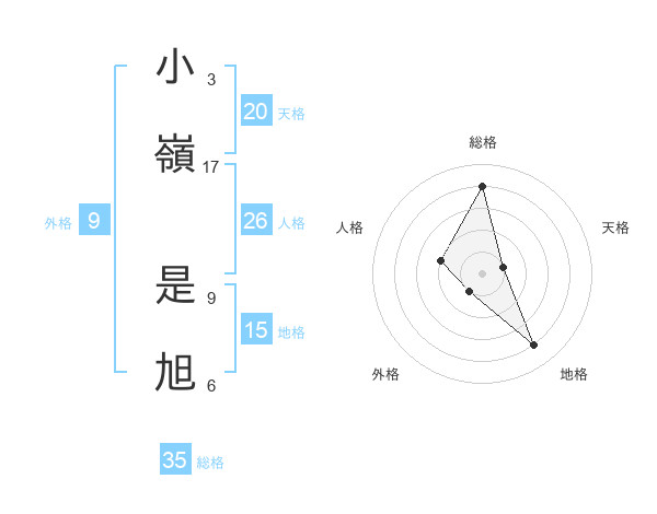 小嶺 是旭さんの総格は35画の4点!