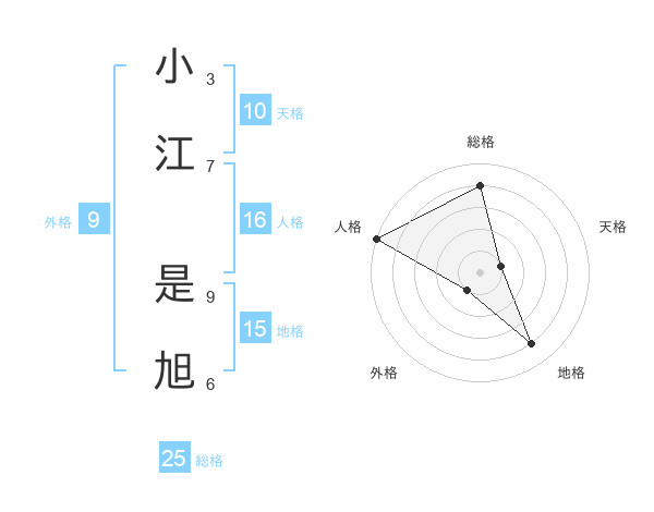 小江 是旭さんの総格は25画の4点!
