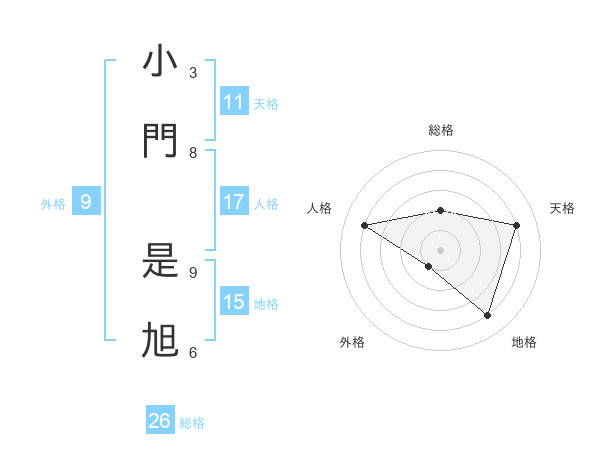 小門 是旭さんの総格は26画の2点!