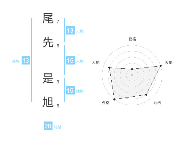 尾先 是旭さんの総格は28画の1点!