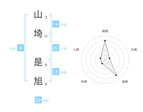山埼 是旭さんの総格は29画の4点!