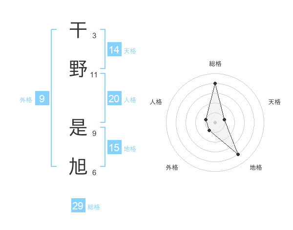 干野 是旭さんの総格は29画の4点!