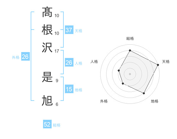 髙根沢 是旭さんの総格は52画の4点!
