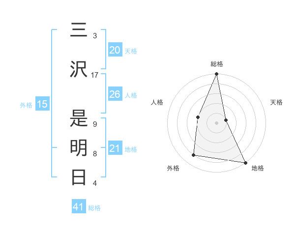 三沢 是明日さんを姓名の画数から五運を鑑定