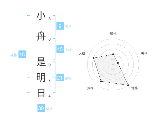 小舟 是明日さんの地格は21画の5点!