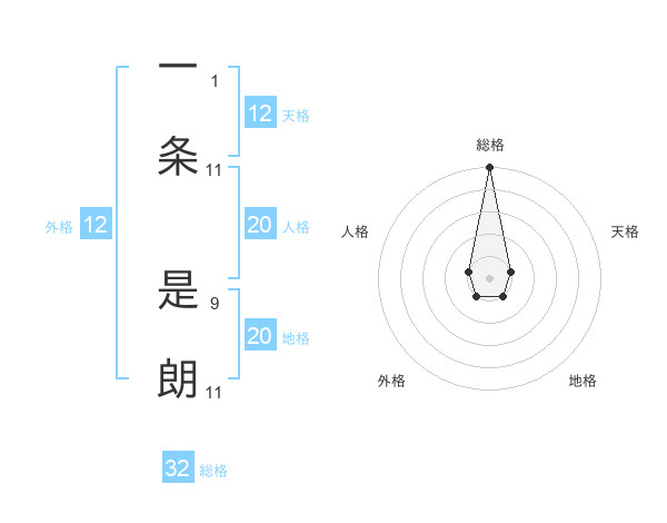一条 是朗さんの総格は32画の5点!