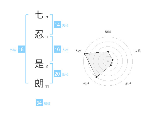 七忍 是朗さんを姓名の画数から五運を鑑定