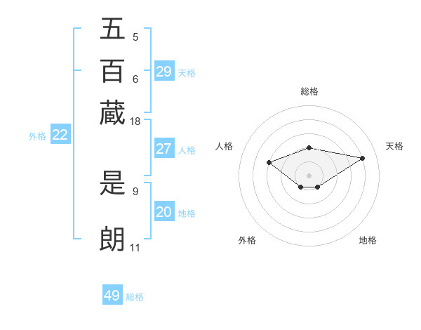 五百蔵 是朗さんの総格は49画の2点!