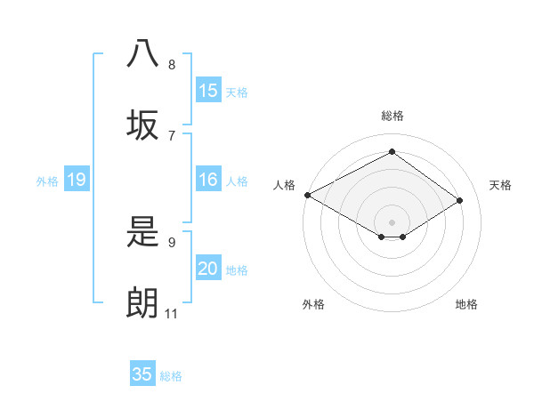 八坂 是朗さんを姓名の画数から五運を鑑定